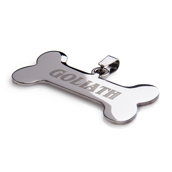 Chapa o placa identificativa en forma de hueso para tu mascota. Dos tamaños.