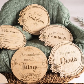 Captura los momentos más especiales del primer año de tu bebé con estas hermosas placas de madera personalizadas. Este set incluye discos decorativos grabados a láser con números para documentar cada mes de crecimiento, además de una placa especial para el primer cumpleaños. Cada disco está elaborado con delicadeza en madera natural y presenta un diseño elegante con motivos florales y el nombre de tu pequeño grabado con precisión. Perfectos para sesiones fotográficas mensuales y como recuerdo perdurable del primer año de vida. Los discos son ideales para crear hermosas composiciones fotográficas y compartir el desarrollo de tu bebé en redes sociales. El acabado natural de la madera aporta un toque cálido y atemporal a las fotografías. Una manera única y especial de conmemorar los primeros doce meses de tu bebé. ???? Un Recuerdo Personalizado y para Siempre Los primeros meses del bebé son irrepetibles, y con este pack de placas de madera personalizadas, podrás capturar cada hito de forma especial. Con el nombre del bebé grabado a láser, cada disco se convierte en un recuerdo único, perfecto para decorar y fotografiar momentos inolvidables. ???? El Regalo Más Exclusivo para Futuros Papás Si buscas un detalle original, personalizado y artesanal, estas placas son la opción perfecta. Regálalas en un baby shower, nacimiento o bautizo y deja una huella en el corazón de los nuevos papás. ✨ Diseño Personalizado con Materiales Naturales Cada placa se elabora con mimo en España, utilizando madera sostenible y un grabado láser preciso para asegurar un acabado de calidad. Un producto seguro, ecológico y diseñado con amor. ???? Ideal para Sesiones de Fotos y Cumplemes Desde la primera foto de bienvenida hasta su primer cumpleaños, este set te ayudará a inmortalizar cada etapa del crecimiento del bebé de una forma única y personal. ???? Un Recuerdo Personalizado y Especial para Tu Bebé Los primeros meses de un bebé pasan volando, pero con este pack de placas de madera personalizadas, podrás inmortalizar cada momento de su crecimiento de forma única. Con el nombre del bebé grabado a láser y un diseño encantador, cada disco será un recuerdo para toda la vida. ???? Un Regalo Exclusivo para Baby Shower o Recién Nacidos Si buscas un detalle único, original y personalizado, este set de placas es la elección perfecta. Sorprende a los futuros papás con un regalo hecho a medida que llenará de emoción cada sesión de fotos y cada cumplemes del bebé. ✨ Personalización Total: Nombre, Tipografía y Diseño Cada placa se graba con una tipografía elegante y delicada, y puedes elegir entre diferentes estilos para que encaje perfectamente con la estética de la habitación infantil. El grabado a láser garantiza un resultado preciso y duradero. ???? Hecho en España con Materiales de Alta Calidad Elaborado artesanalmente con madera sostenible, cada disco tiene un acabado suave y seguro, ideal para estar en contacto con el bebé. Todo el proceso se hace con mimo y cariño, asegurando un producto único y especial. ???? Inmortaliza Momentos Inolvidables Desde la primera foto de bienvenida hasta su primer cumpleaños, este pack es el complemento perfecto para crear un álbum lleno de recuerdos mágicos. Un detalle imprescindible para cualquier familia.