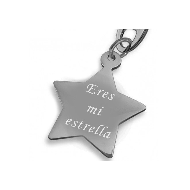 Llavero en forma de estrella, con posibilidad de grabar un retrato o nombre.