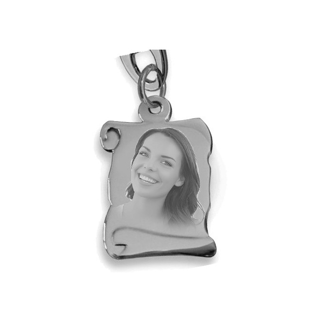 Llavero en forma de pergamino, con posibilidad de grabar un retrato o nombre, con un bonito diseño y acabado.