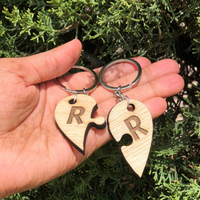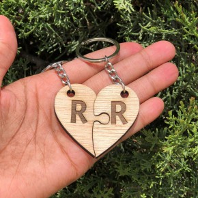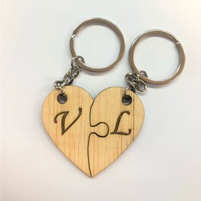 Llavero Corazón partido de madera, llavero origina y personal con un resultado en el grabado excepcional.