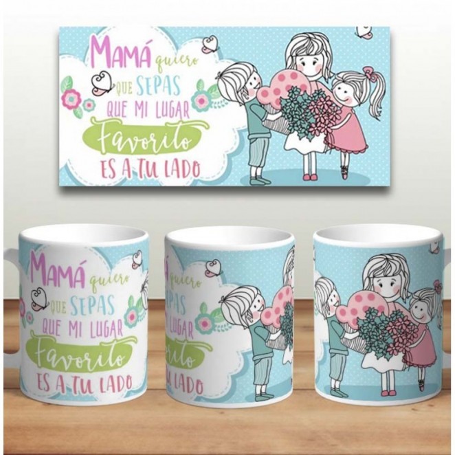 Taza "Mi lugar favorito es a tu lado Mamá"