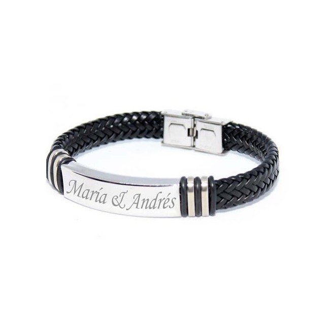 Diseño moderno y elegante para una pulsera piel trenzada, perfecta para regalo. Personalizada con un grabado especial y seguro que te encantará.